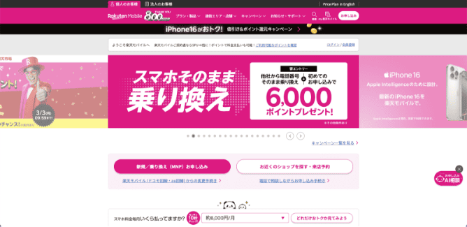 楽天モバイルは、独自の楽天回線を利用してサービスを提供している格安SIMです。主要な格安SIMの中では、唯一通信速度制限なくギガを無制限に使える従量制のプランで、どれだけ使っても月額3,278円しかかかりません。